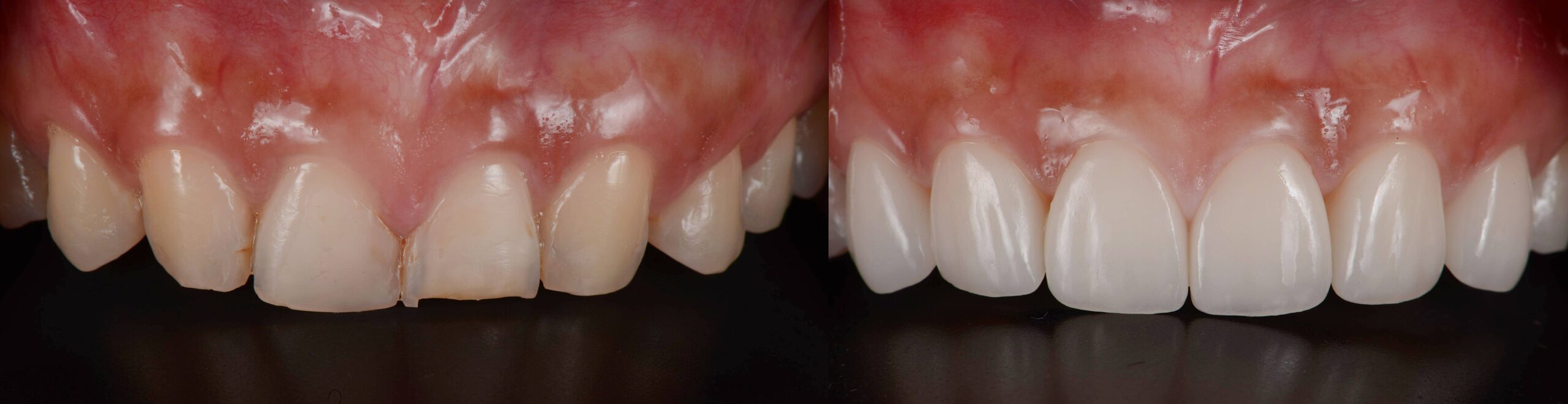 As the name suggests, direct bonding is applied directly to the teeth at our dental practice using a tooth-coloured resin-like material. In fact, it’s the same material that we use for our white fillings. The teeth are prepared, and the material is mixed, applied, hardened and finished in just one sitting.
